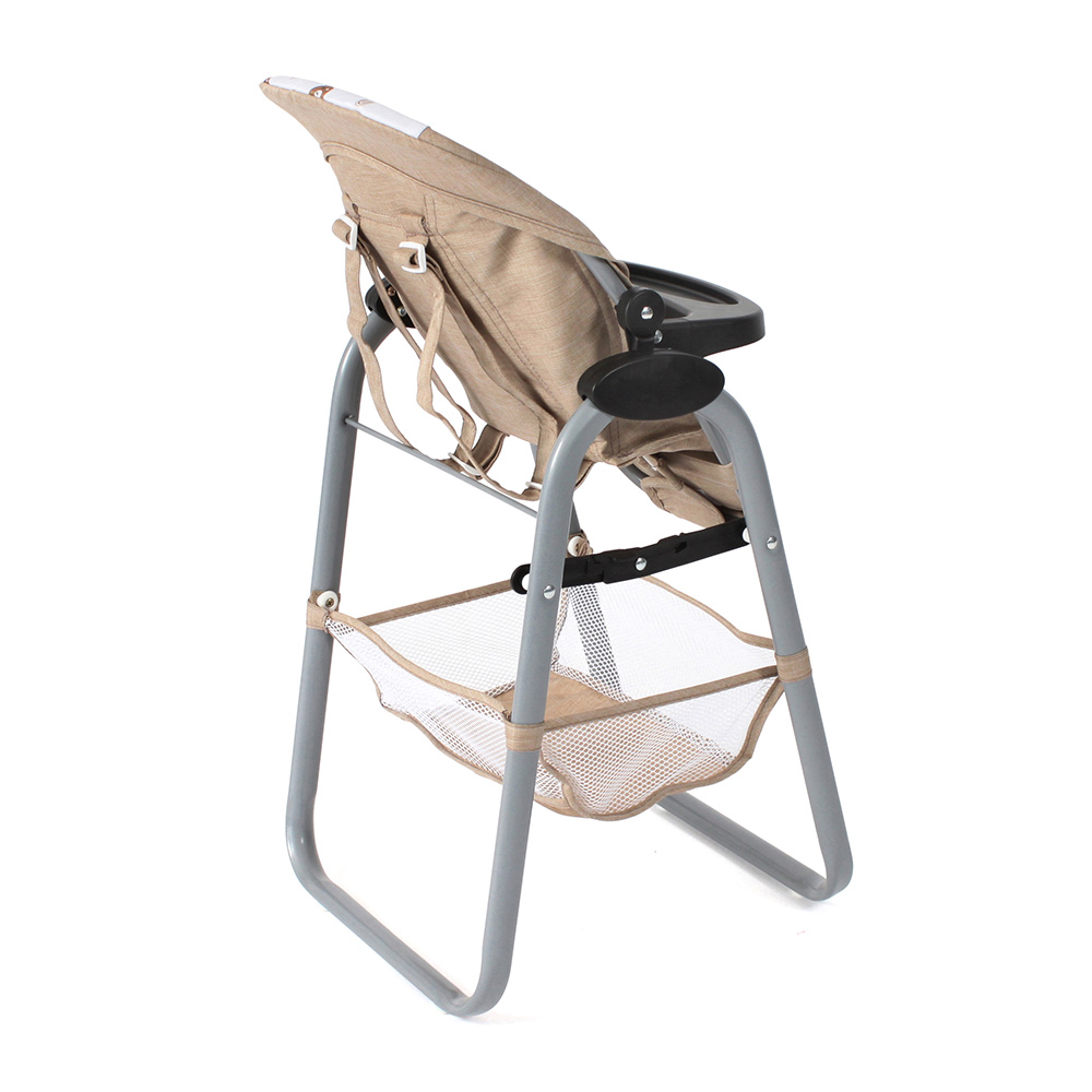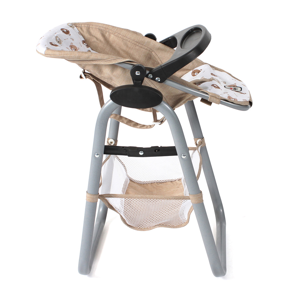 De stoel heeft een veiligheidsgordel en een plateau zodat de pop niet uit de stoel kan vallen.